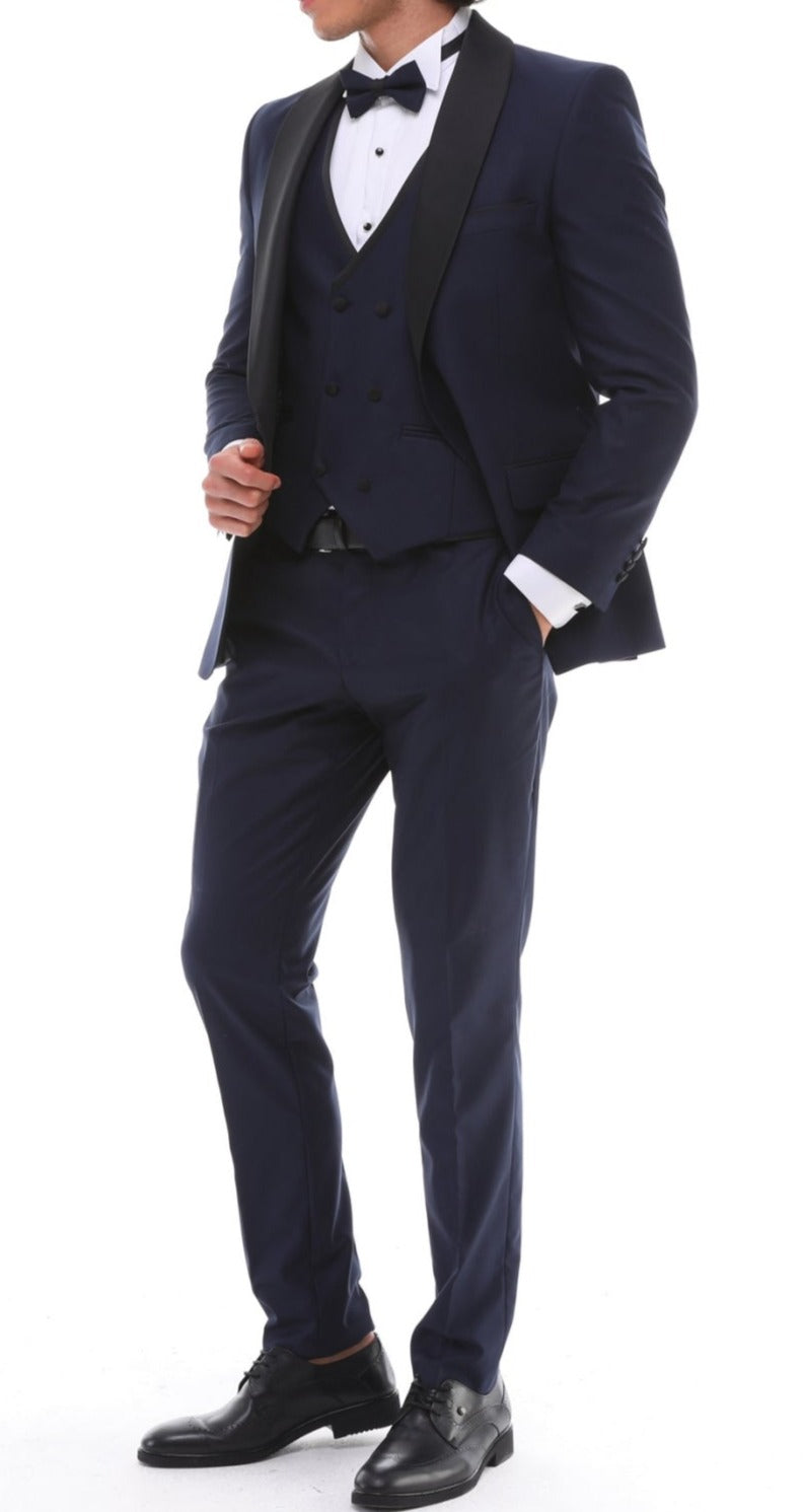 ANTIQUE NAVY SHAWL - Navy Satin Four Piece Tuxedo