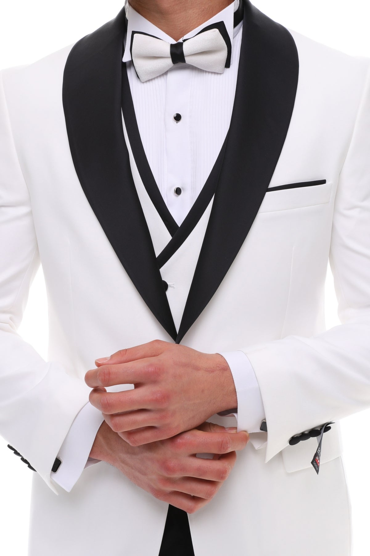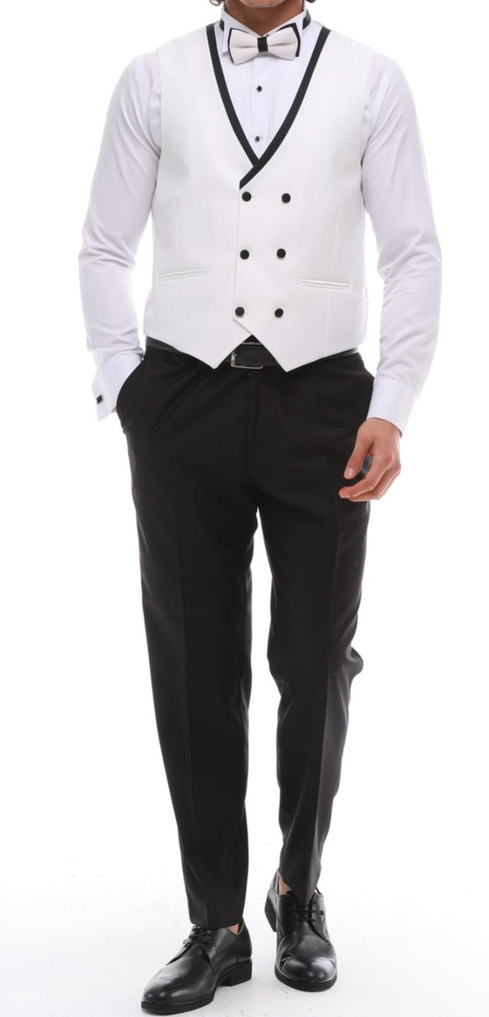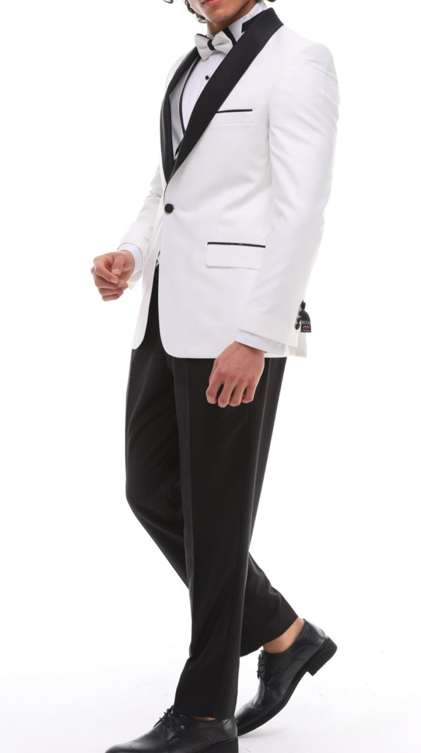 Men's ANTIQUE White 4 Piece Suit - White & Black Satin Details Shawl Lapel Tuxedo