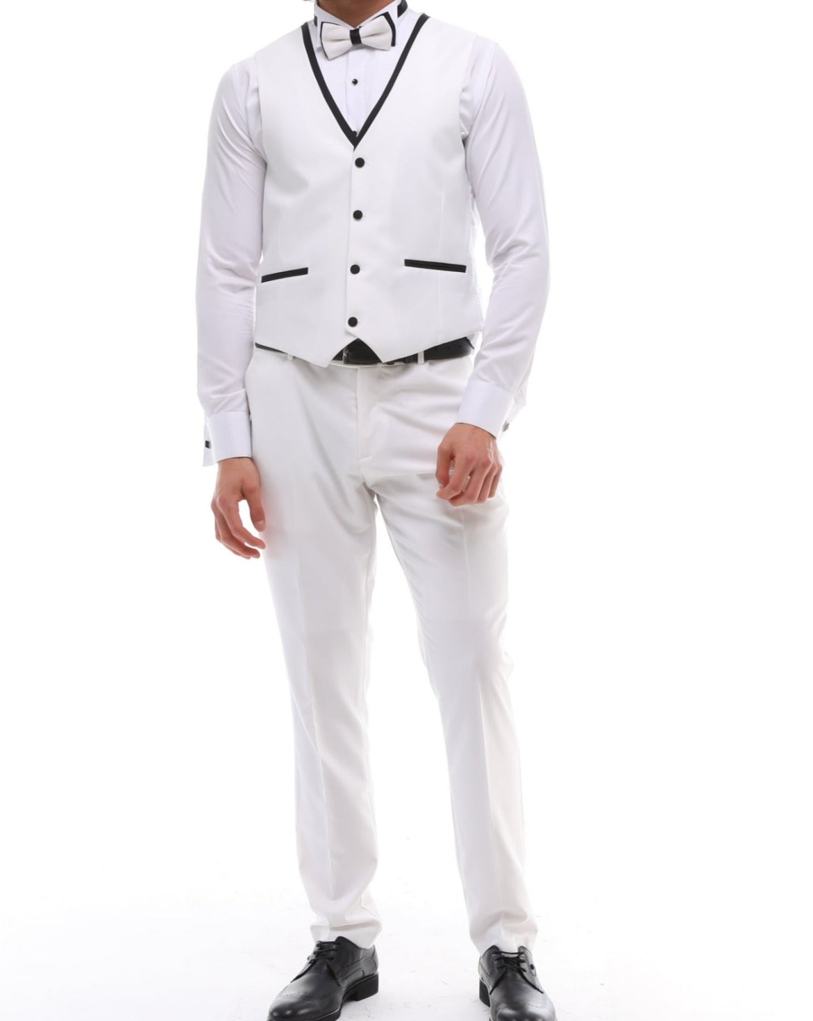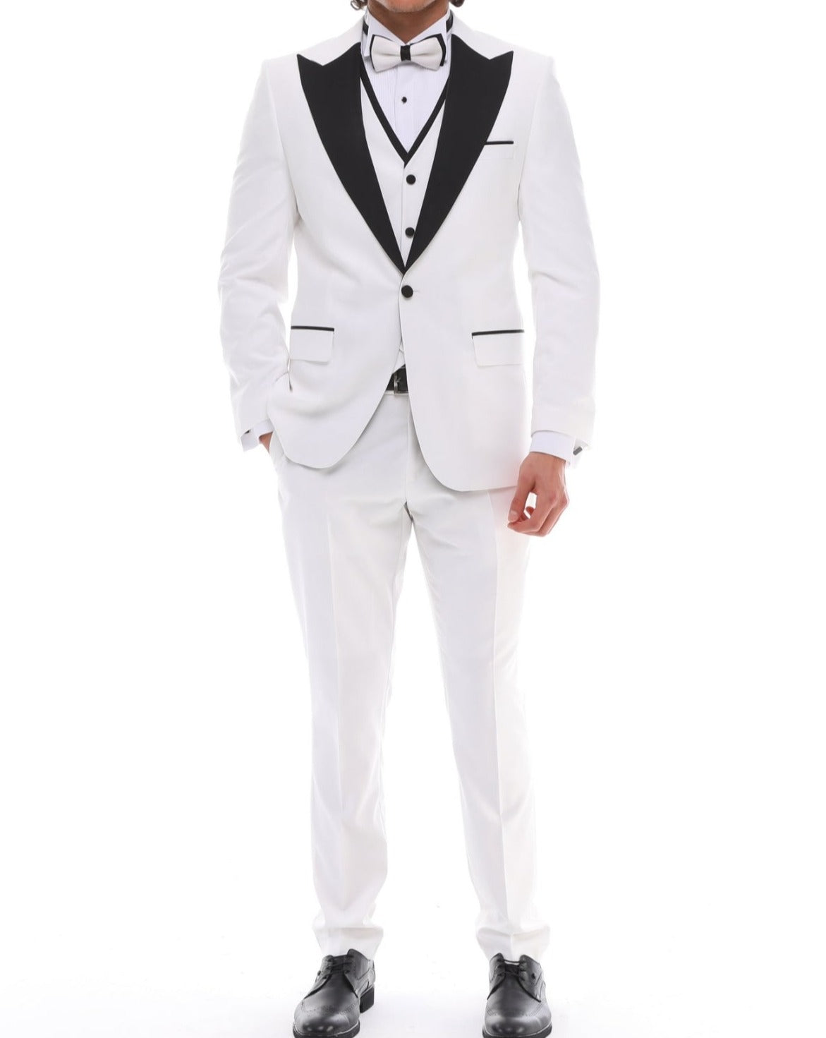 Men's ANTIQUE White 4 Piece Tuxedo - White & Black Peaked Lapel Satin Details Suit