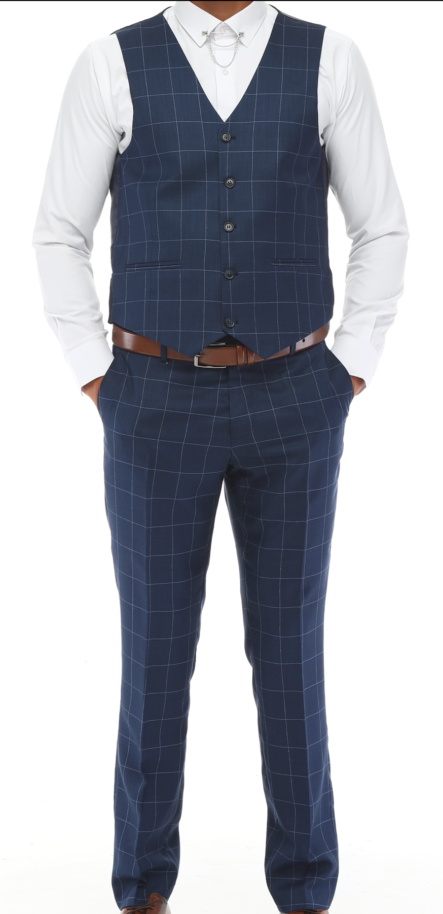 A timeless a Blue & Light Blue check three piece suits that can be styled up for special events or styled down for...
