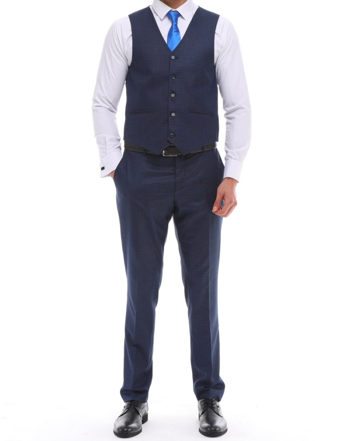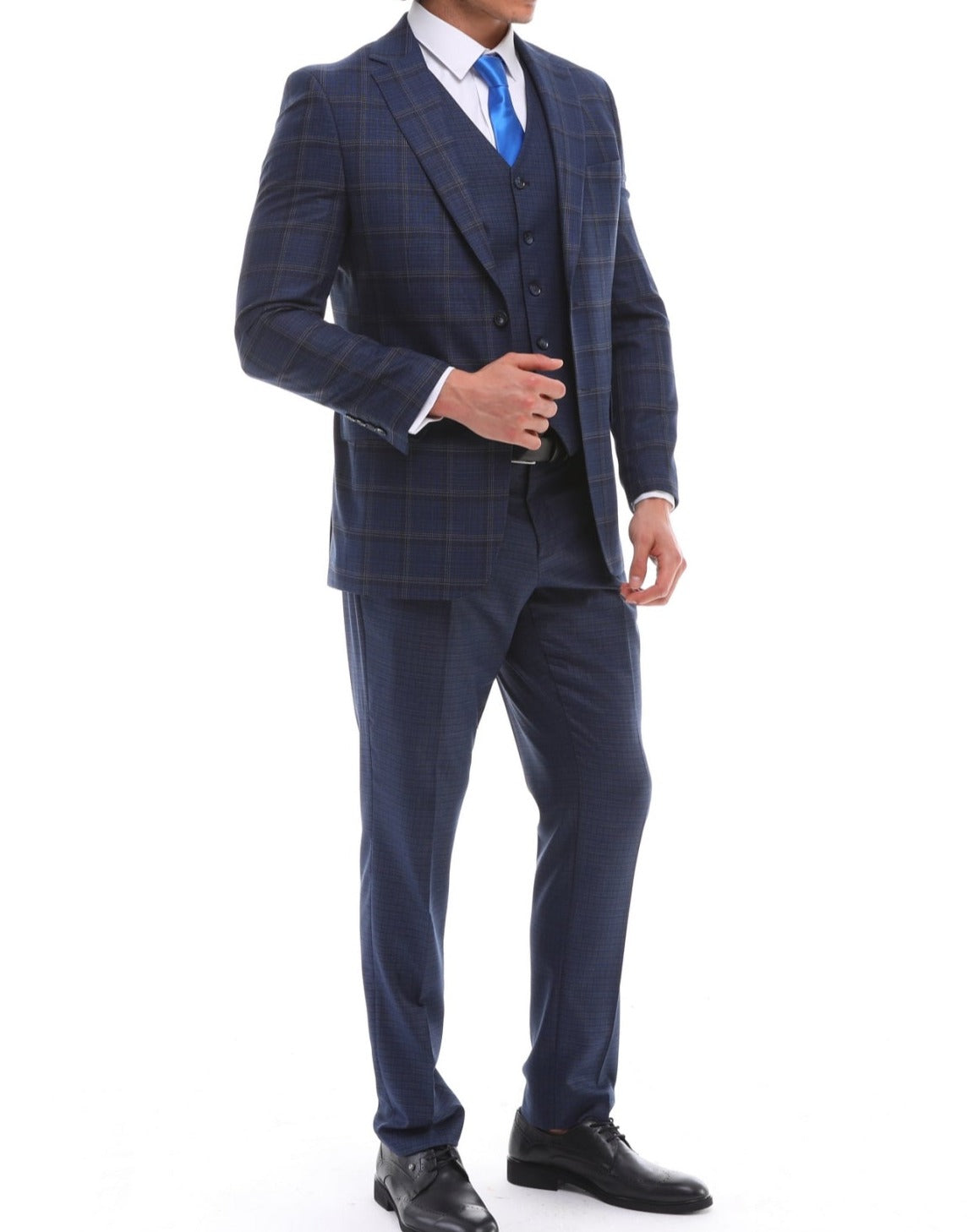 A timeless a mixed combined blue check three piece suits that can be styled up for special events or styled down for the office. The...