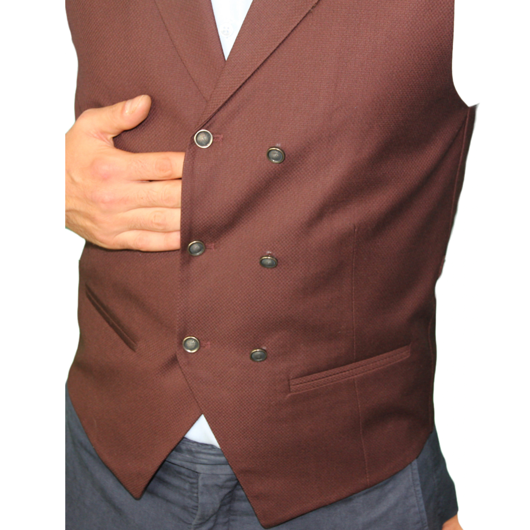 This Burgundy cotton waistcoat, a master cut tailored fit that’ll provide strong lines without feeling too restrictive Perfect For Parties, Proms & Weddings, Double Breasted Button Design Waistcoat for master cutting.The textured weave of the fabric is given a modern boost with a contrasting windowpane check, so keep your shirt and tie plain to avoid overdoing the detail.