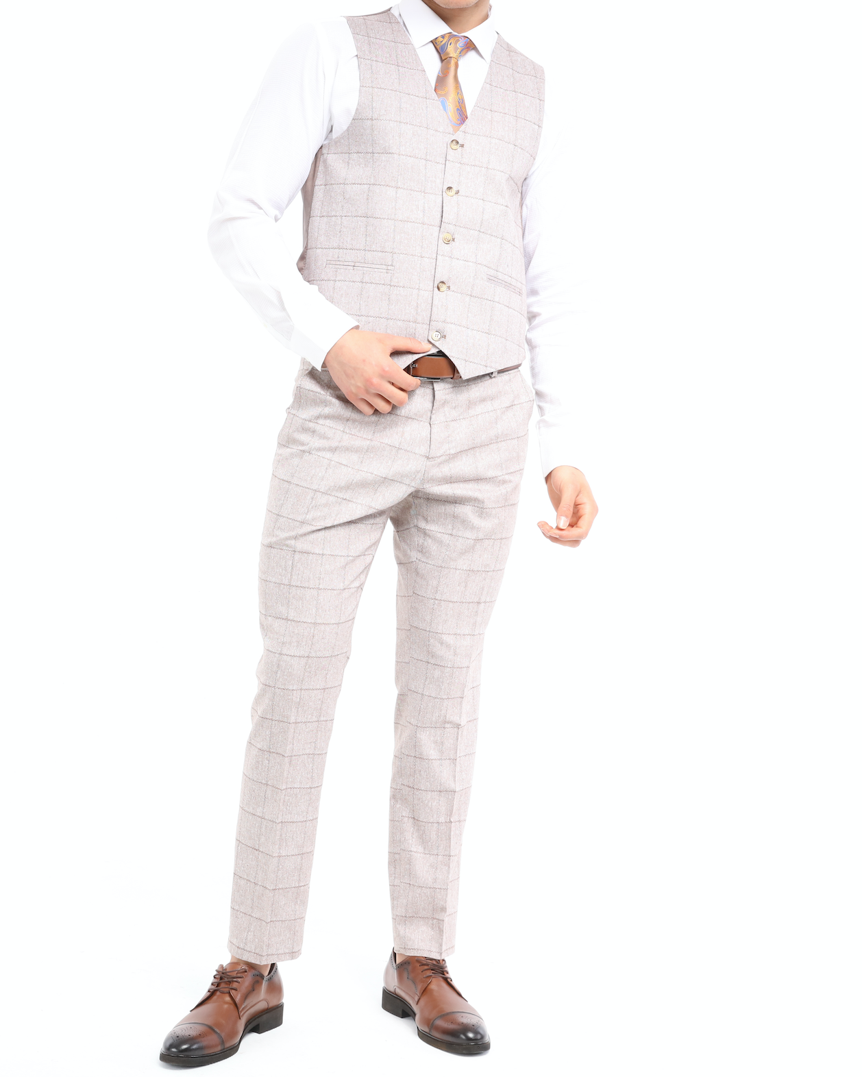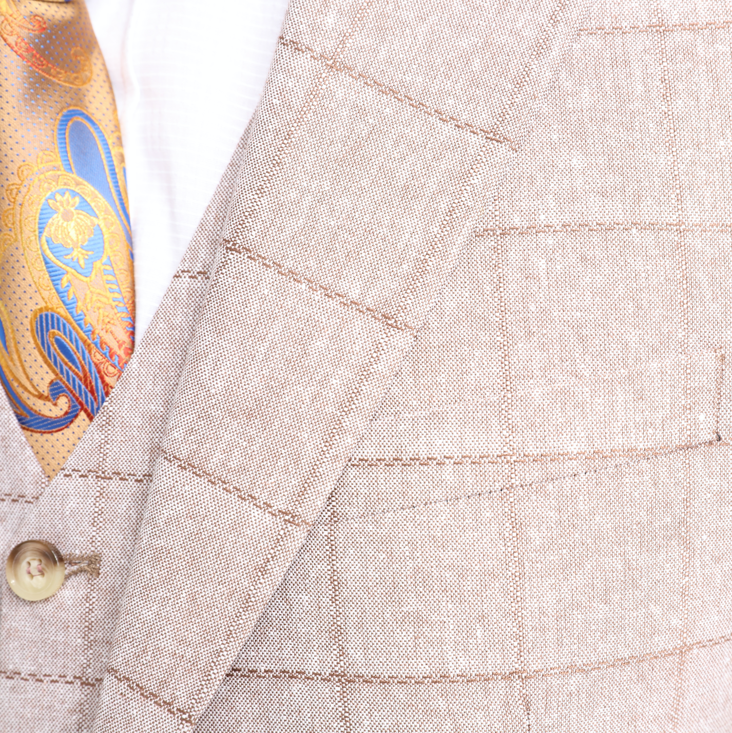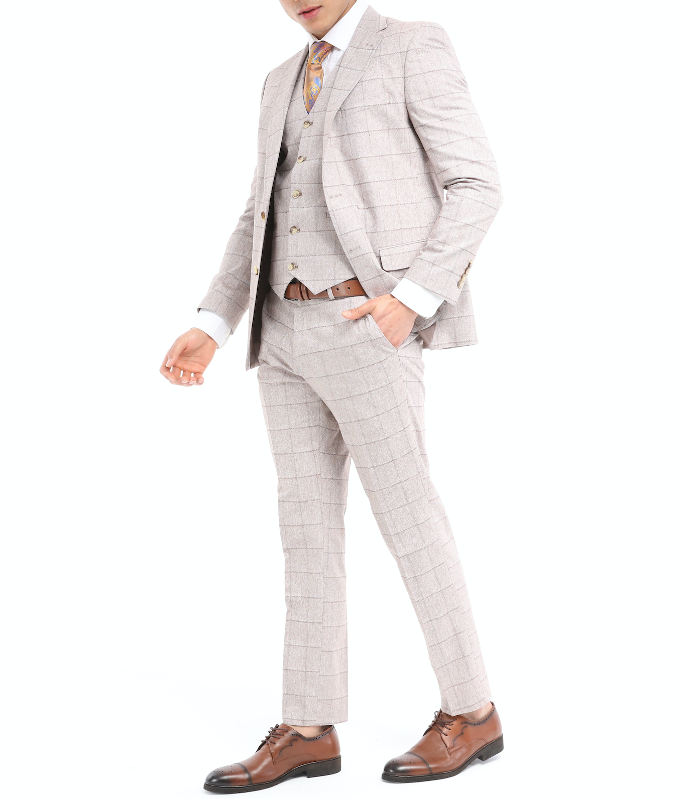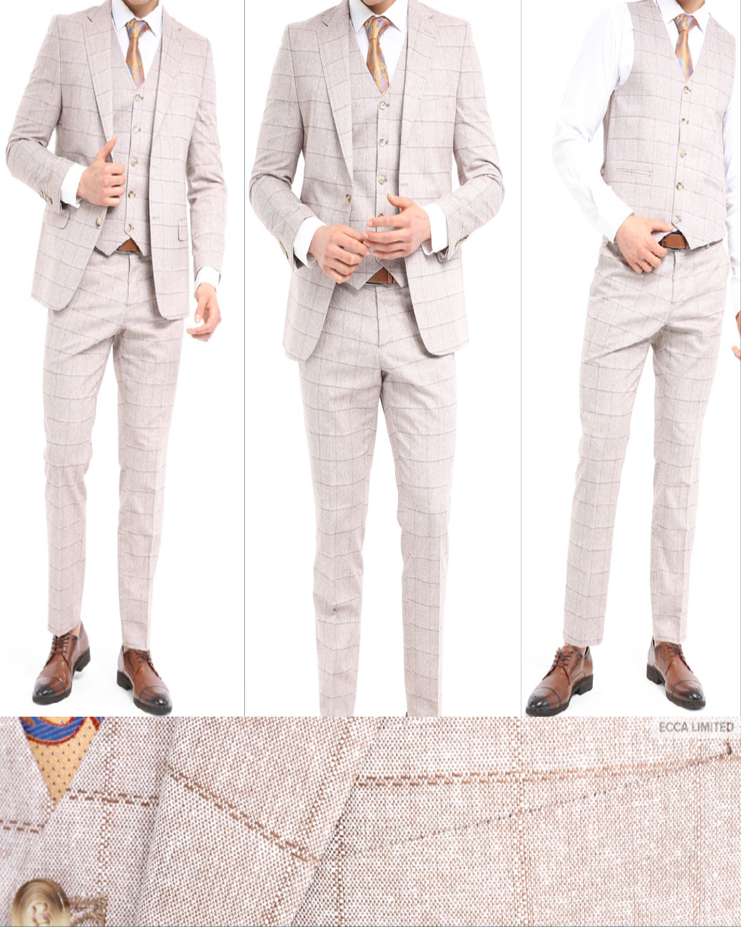 A timeless brownish check three pieces Linen suits that can be styled up for special events or styled down for the office....
