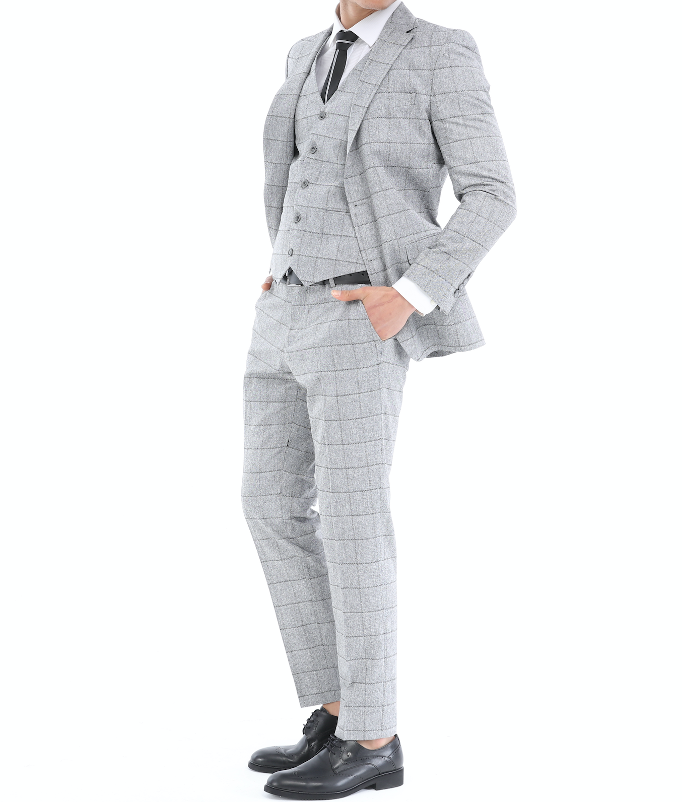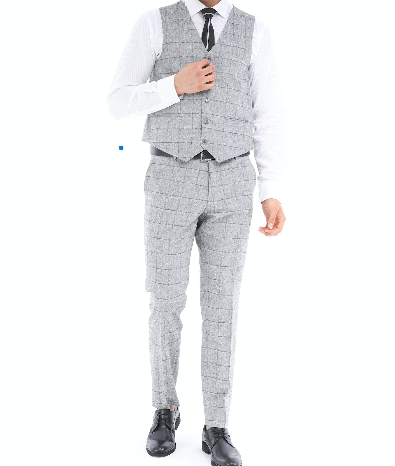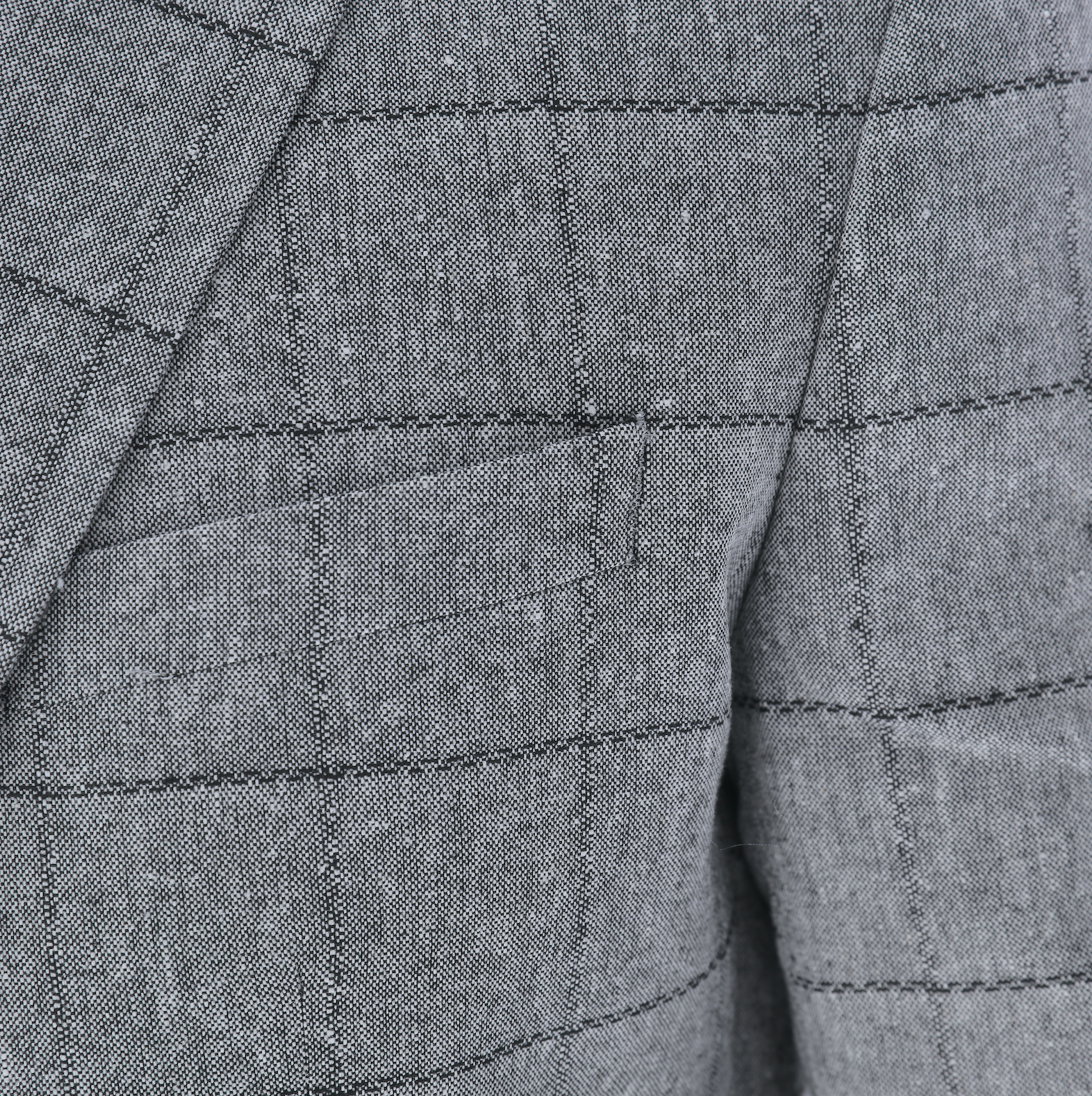 A timeless grey check with black three pieces Linen suits that can be styled up for special events or styled down for the...