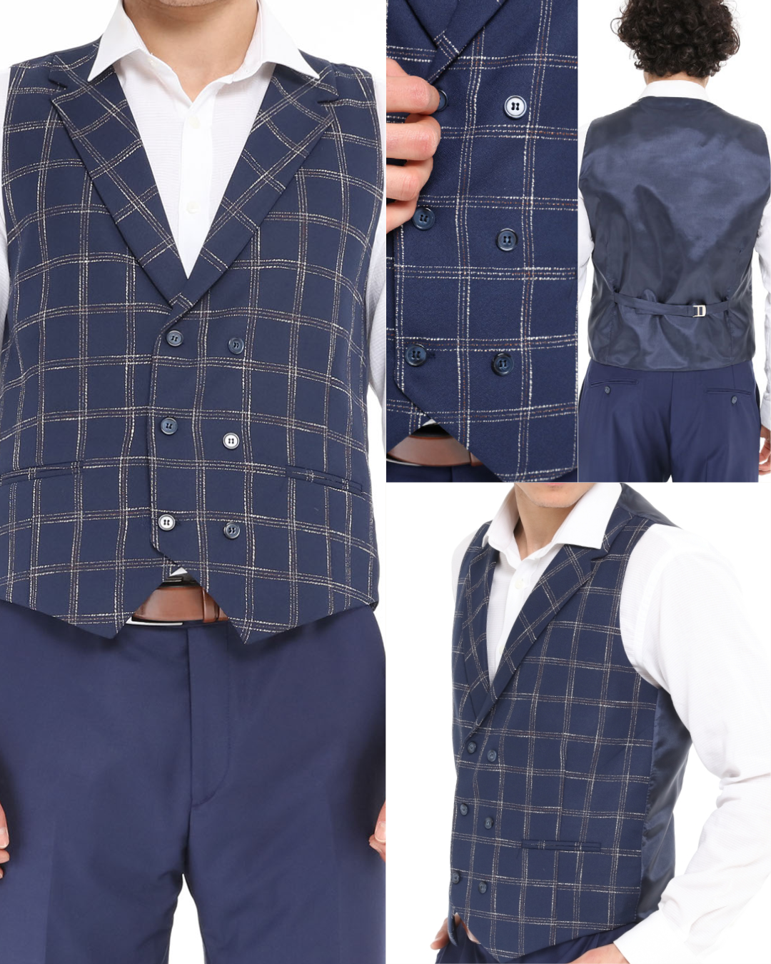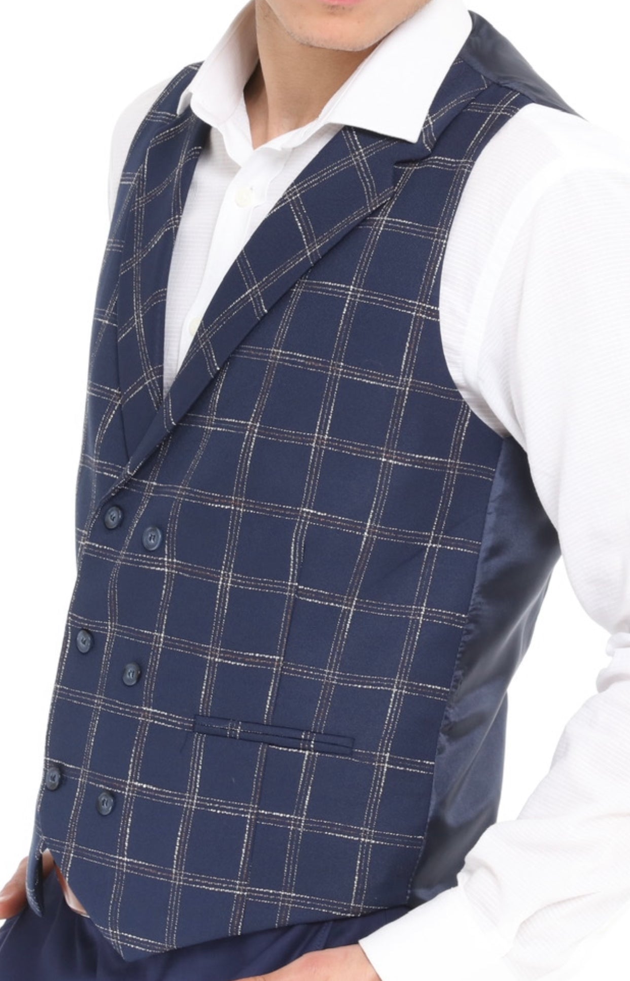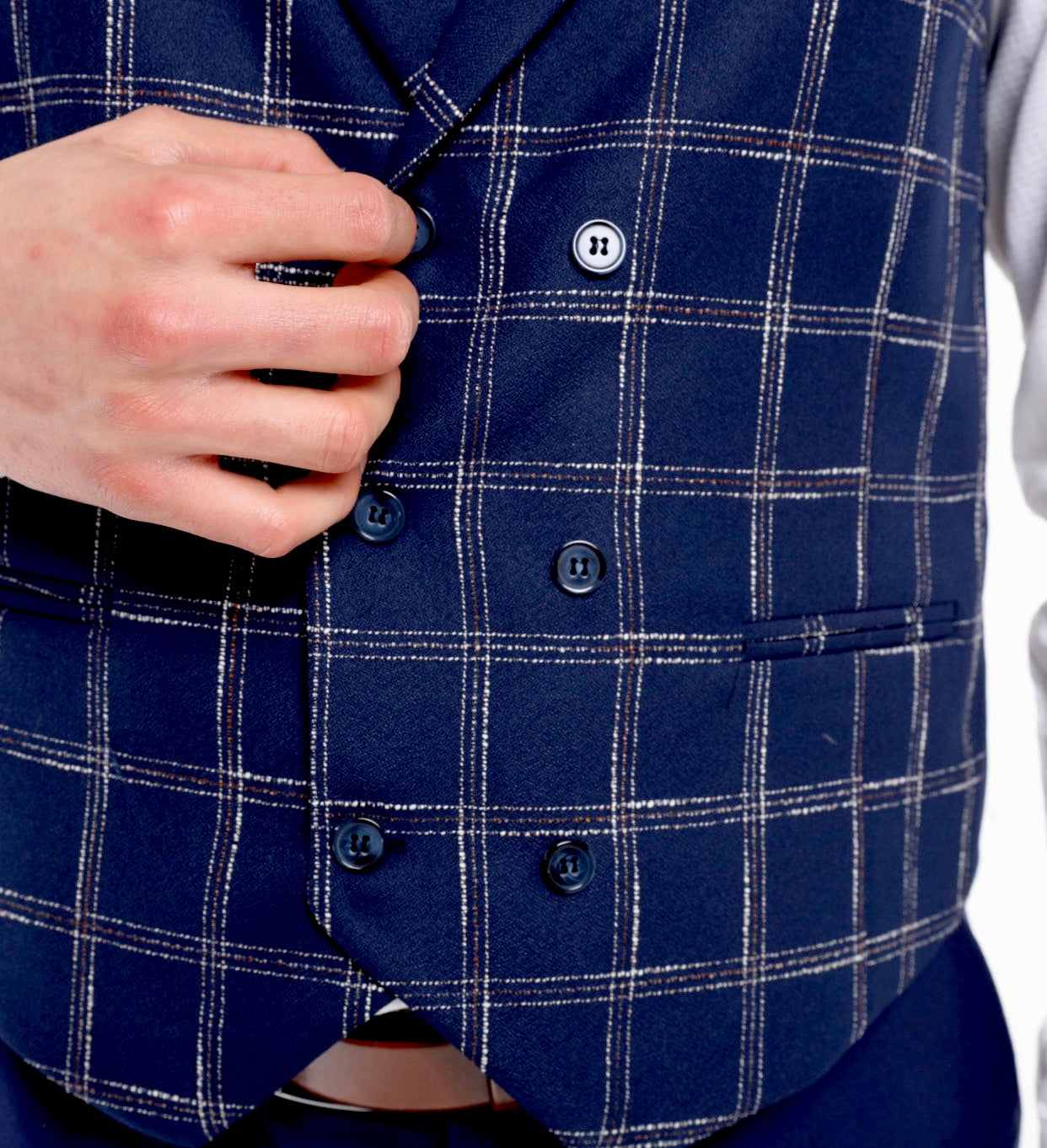 ICONIC NAVY DOUBLER - Navy Check Double Breasted Waistcoat